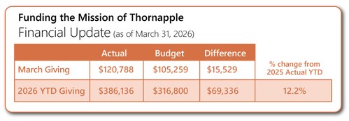 As we wrap the first quarter of 2026, we are grateful for the continued generosity of our congregation and its financial support which enables us to live out the church's mission and ministry goals!